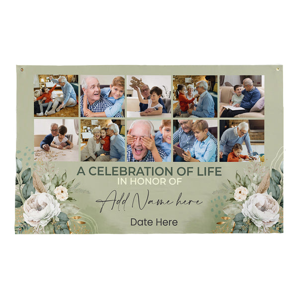 A Celebration Of Life - Green Floral - Personalised Photo 5ft x 3ft Fabric Banner