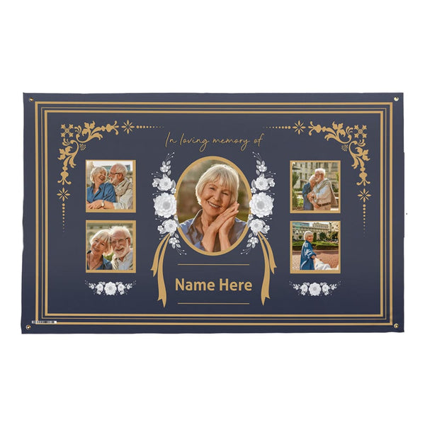 In Loving Memory - Gold & Navy Gradient - Personalised Photo 5ft x 3ft Fabric Banner