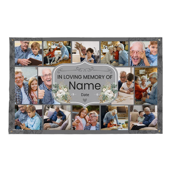 In Loving Memory - 14 Photo Collage - Personalised Photo 5ft x 3ft Fabric Banner