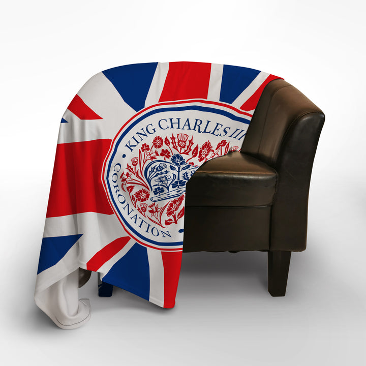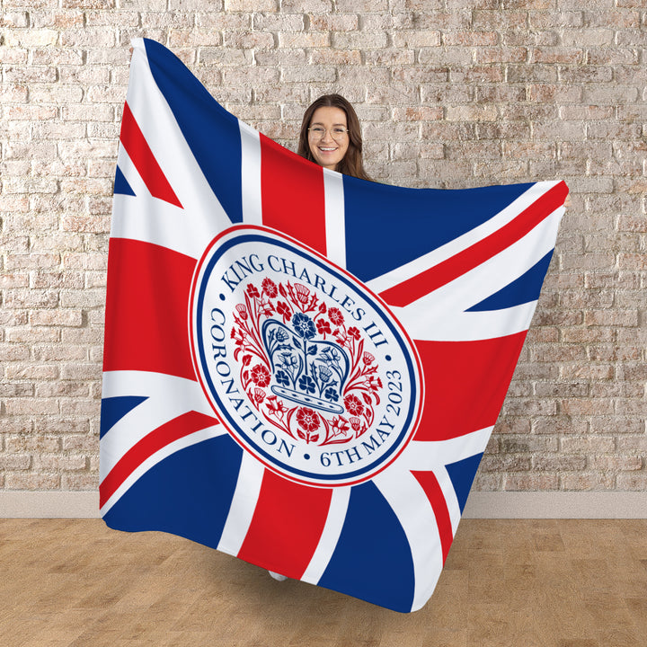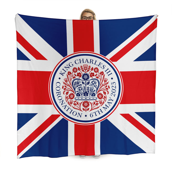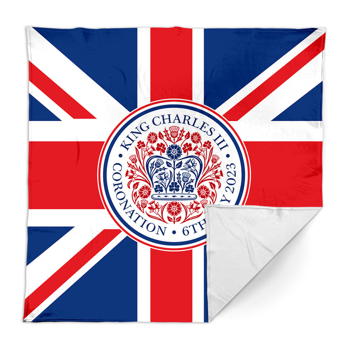 King Charles Coronation - Union Jack - Official Royal Badge - 150 x 150cm Fleece Blanket