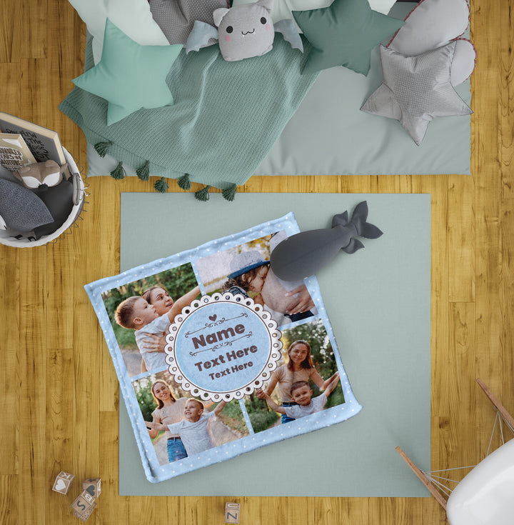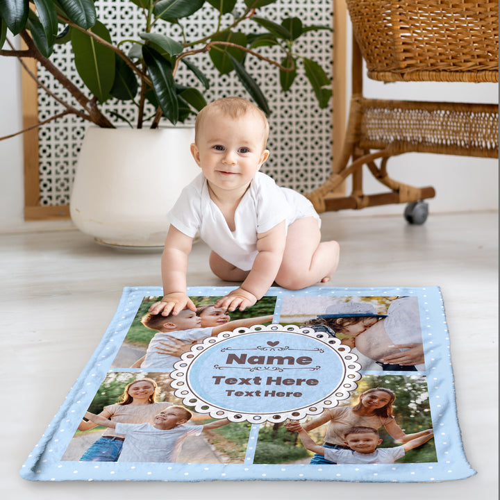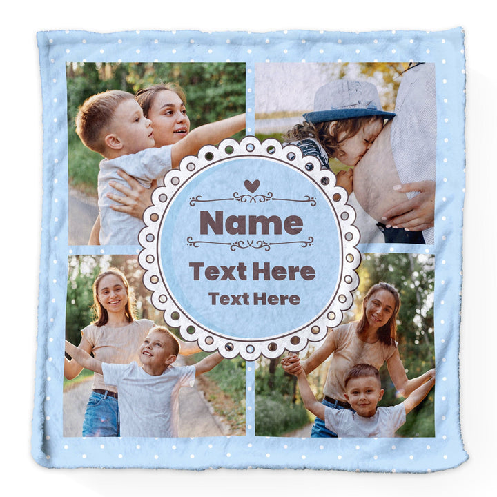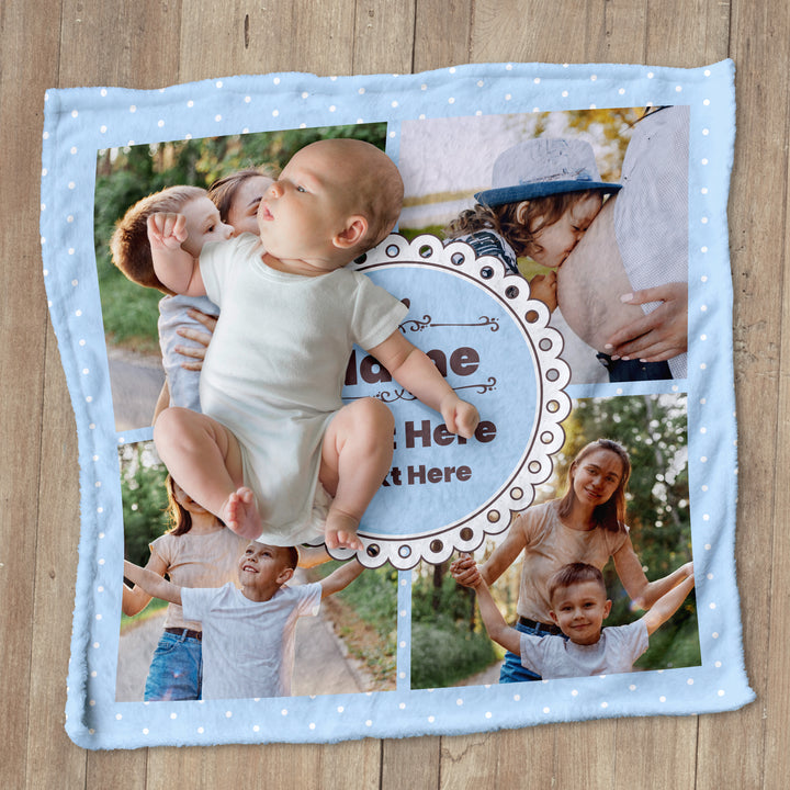 4 Photo - Blue Dot - Personalised Extra Soft Luxury Baby Blanket - 75cm x 75cm
