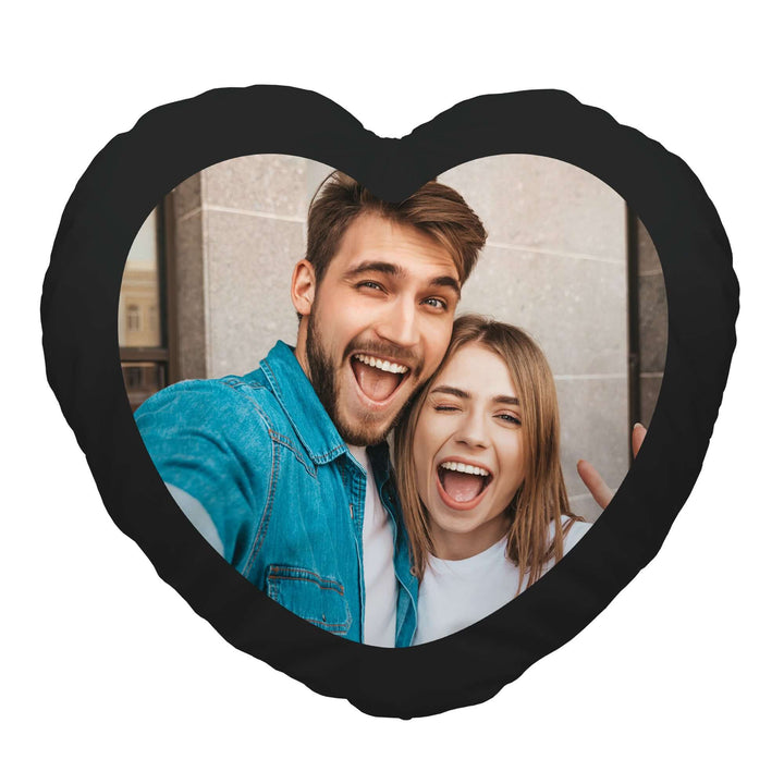 Be My Valentines - Black Heart Shaped Photo Cushion