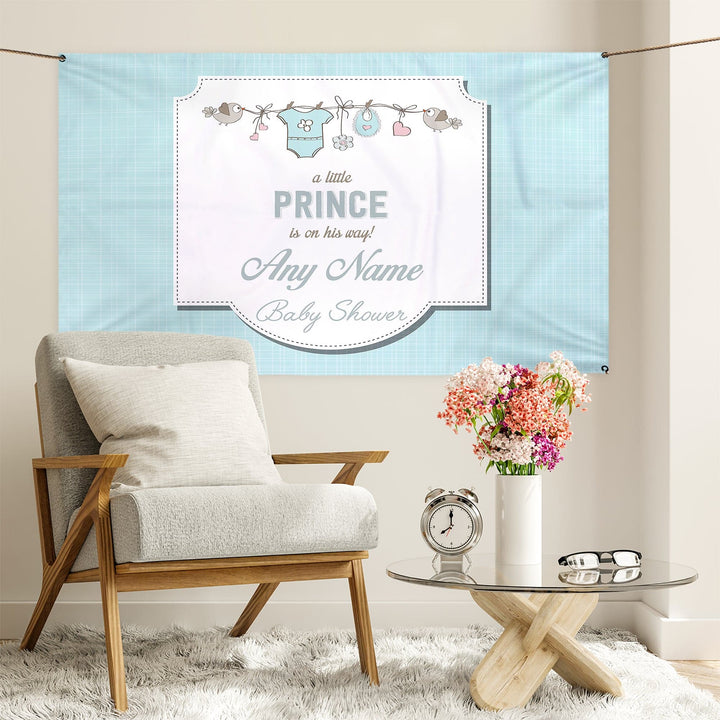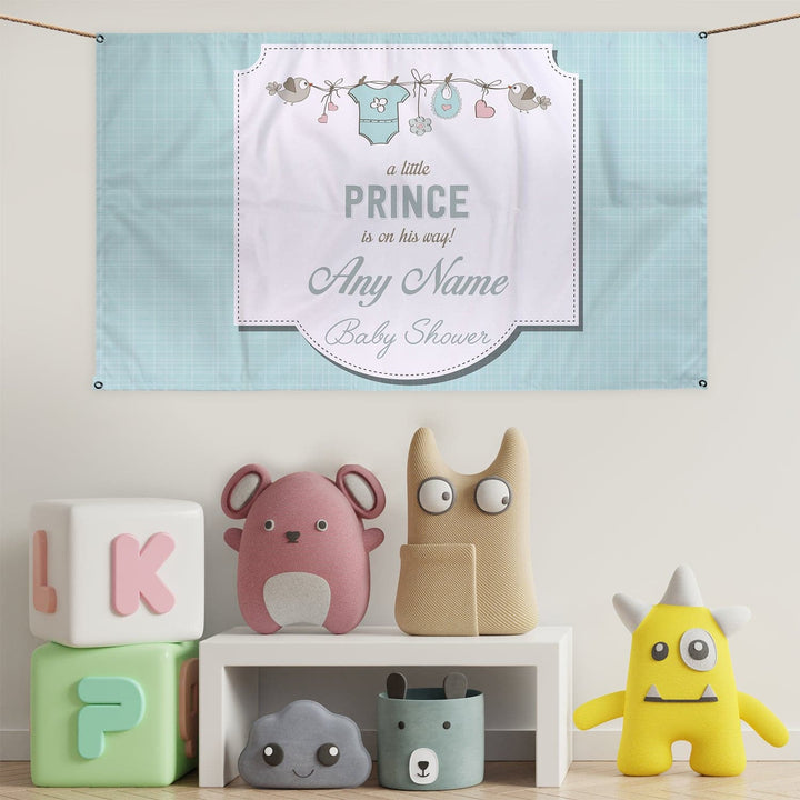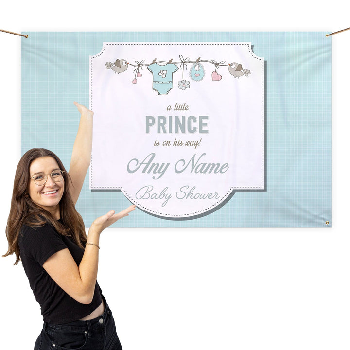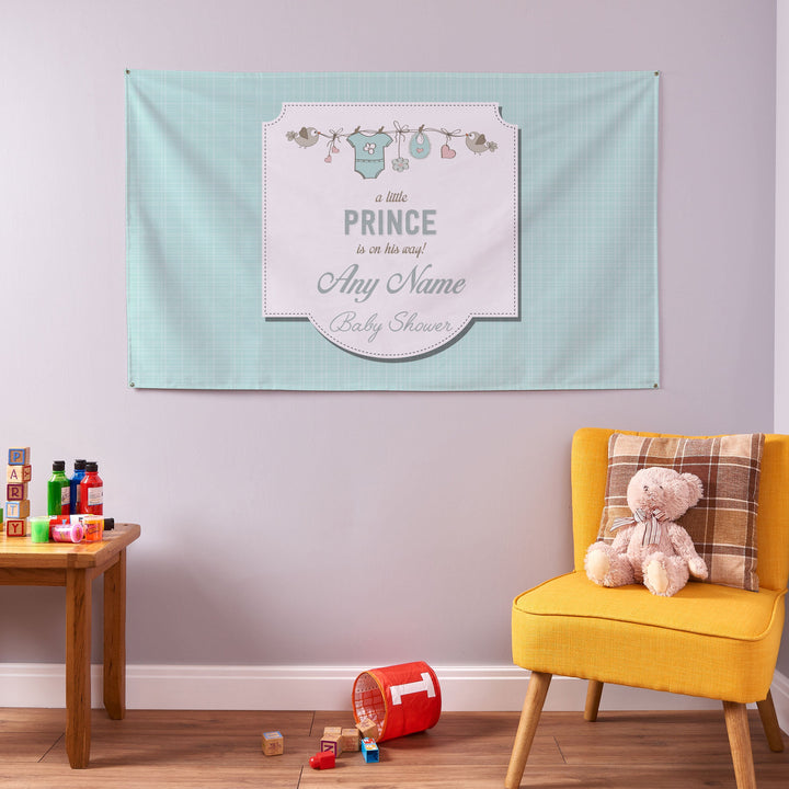 This personalised Baby Shower banner is a great addition to your upcoming Baby Shower party, or any other occasion! Edit the text in the centre to reflect your occasion or share a personal message, ready to welcome the new little prince!