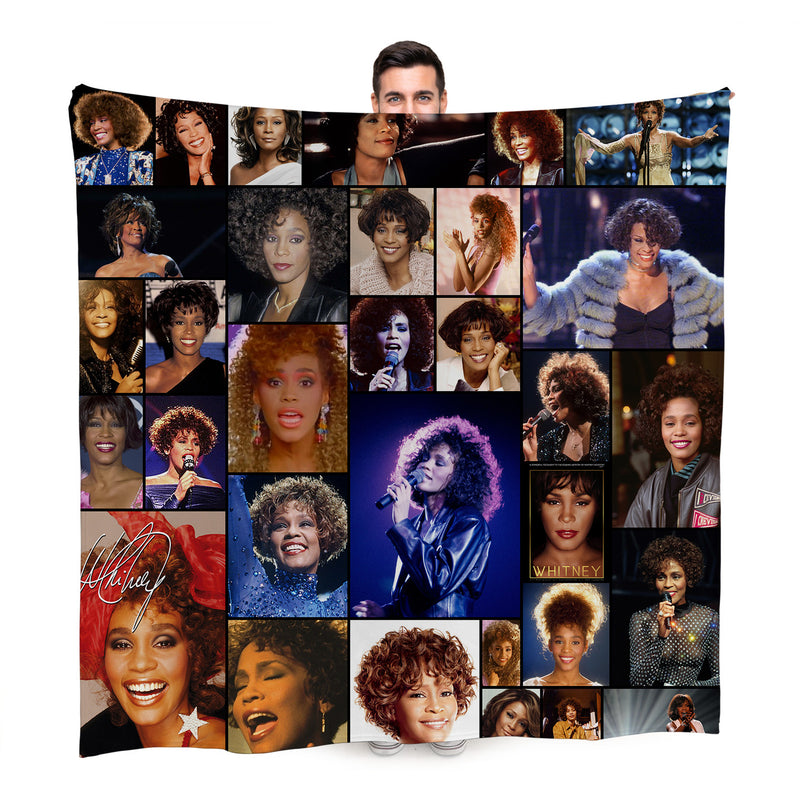 Whitney Houston Montage Celebrity Fleece Throw - Large Size 150cm x 150cm