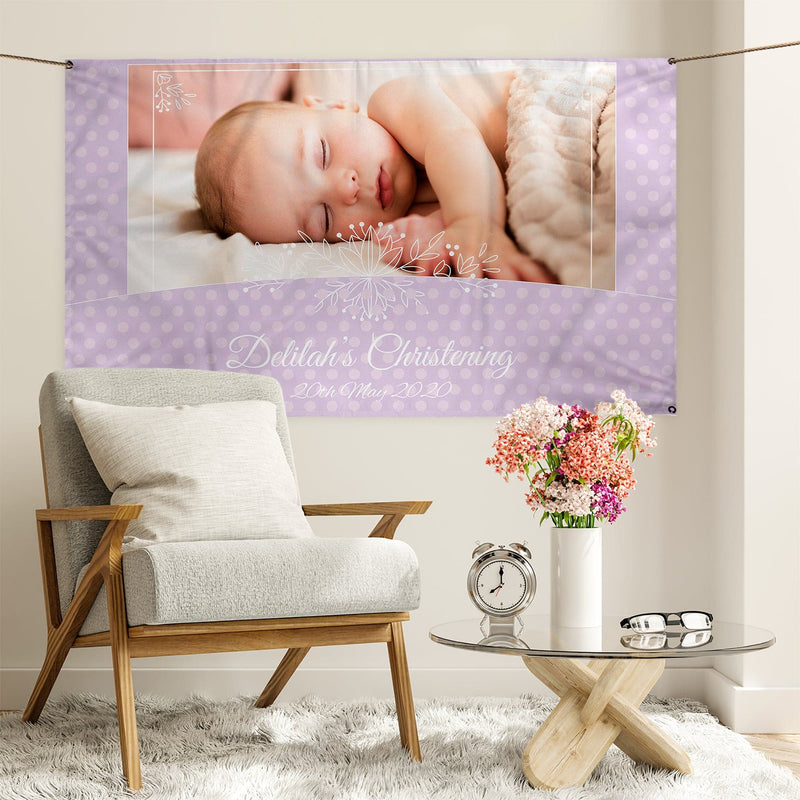 This personalised photo banner is a great addition to your upcoming event! Suitable for any occasion, including Weddings, Christenings, Birthdays or Anniversaries. Edit the text to reflect your occasion or share a personal message and your most cherished photo.