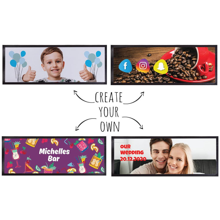 Our bar runners are ideal for multiple purposes and venues. Personalise with your bar or pub name or add that extra personalised touch to a special occasion.