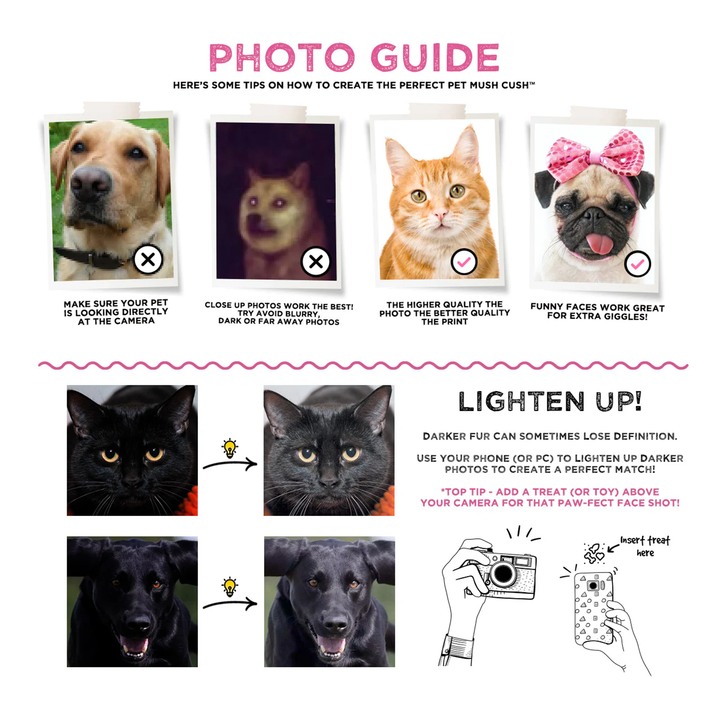 It is important that use us a light, high quality image of your pet. If the image is dark or shadowed in any way, it may affect the product quality as we use a ‘super black’ sublimation ink for quality purposes, and this tends to darken the colours slightly - it may not look like your example image!
