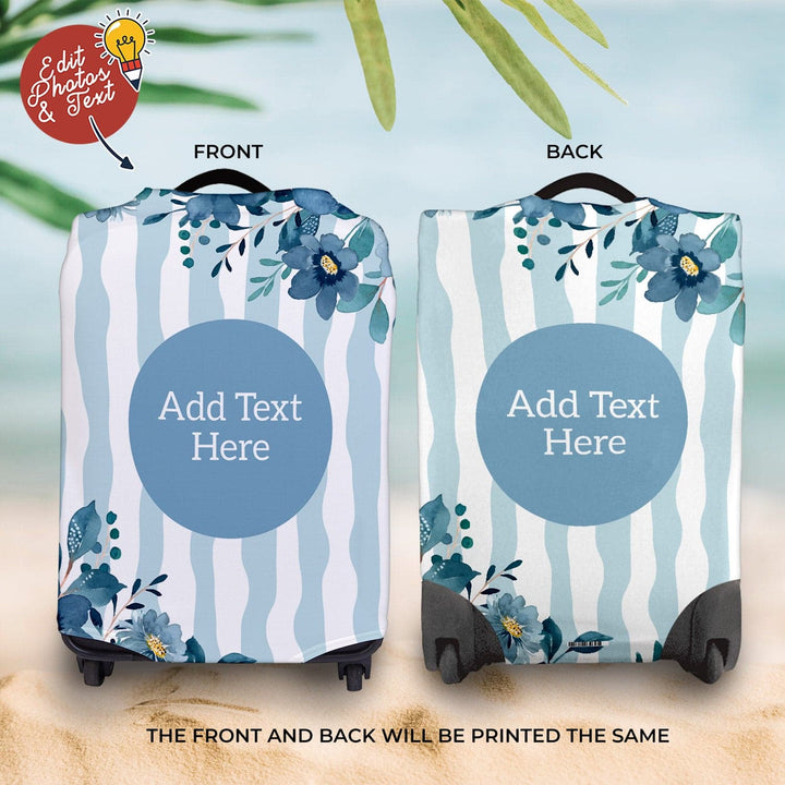 Floral Stripe - Blue - Personalised Text CaseSkin