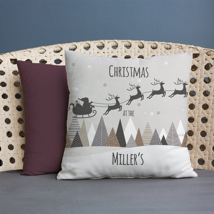Grey Santa Sleigh - Personalised 45cm Cushion