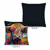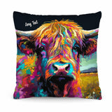 Highland Cow - Bright Colours - Dark Navy Base - 26cm x 26cm - Personalised Cushion