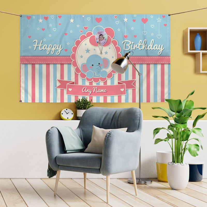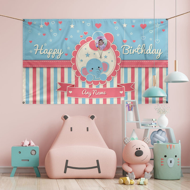 Kids Elephant Birthday Banner - 5ft x 3ft