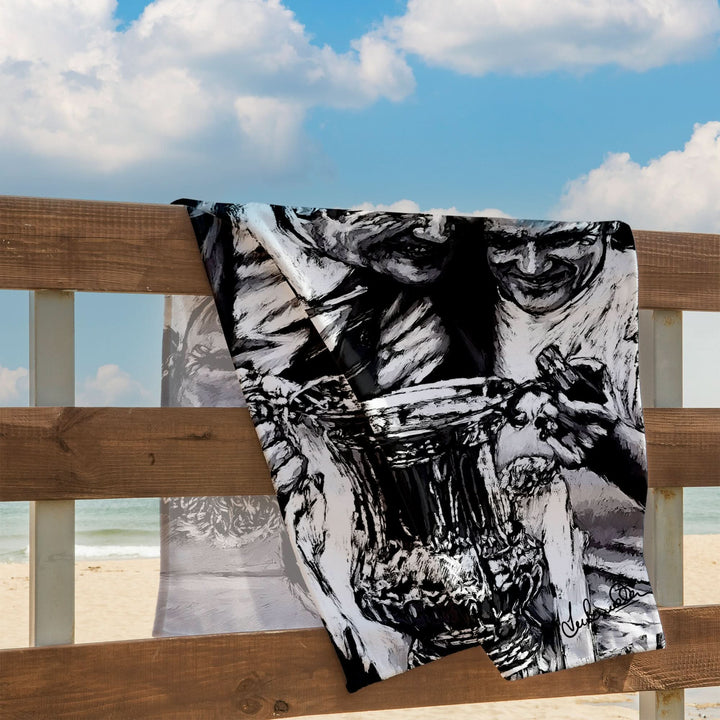 Our beach towels are printed one sided, edge to edge and hand sewn for a quality finish. They are designed, printed, and manufactured to order in Yorkshire, England. We use dye sublimation to ensure a vibrant, high-quality print.