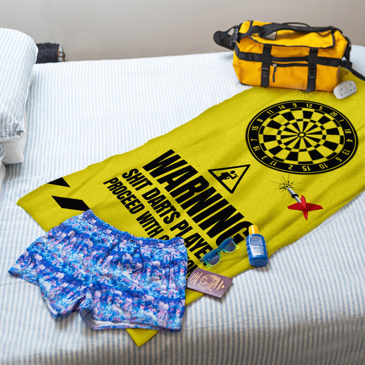 Warning! Sh*t Darts Player - Darts Beach Towel - 150cm x 75cm