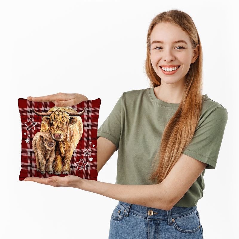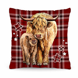 Pair Of Cows - Red Check - 26cm x 26cm - Personalised Cushion