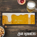 Our personalised bar runners are ideal for multiple purposes and venues. Personalise with your bar or pub name or add that extra personalised touch to a special occasion.