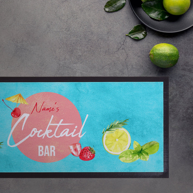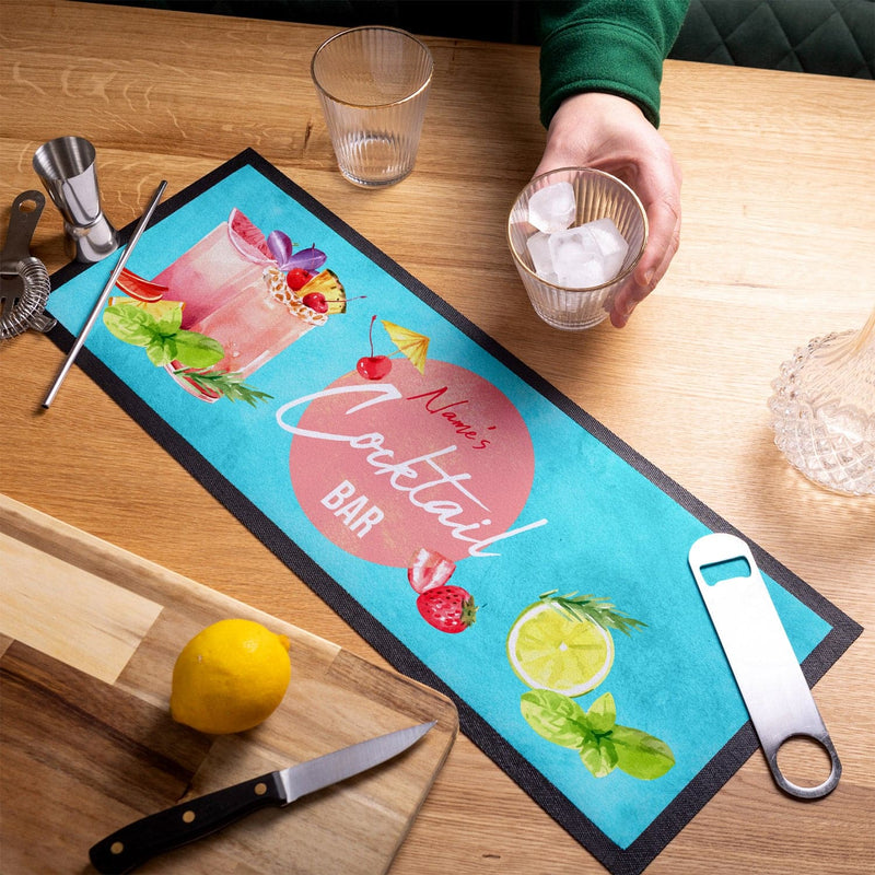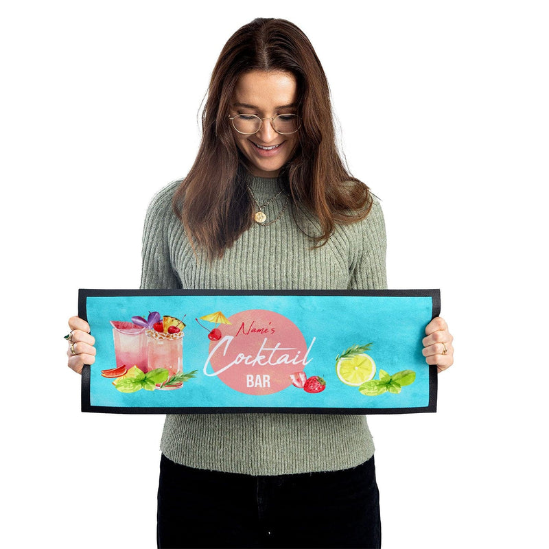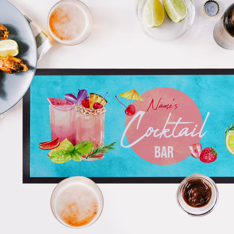 Personalised Bar Runner - Cocktail Bar - Watercolour - Blue