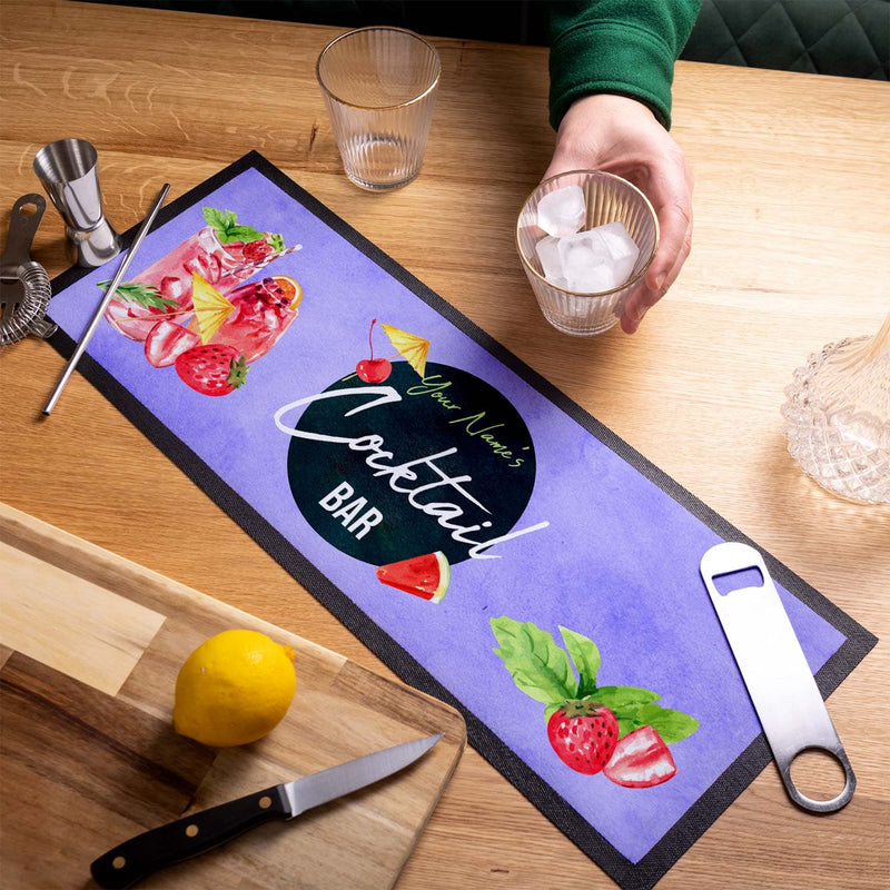 Personalised Bar Runner - Cocktail Bar - Watercolour - Purple