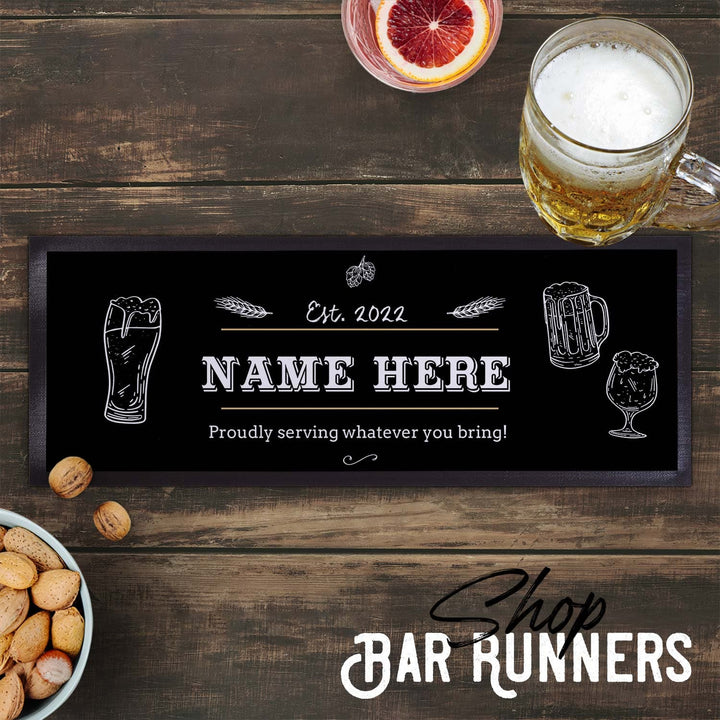 Our personalised bar runners are ideal for multiple purposes and venues. Personalise with your bar or pub name or add that extra personalised touch to a special occasion.