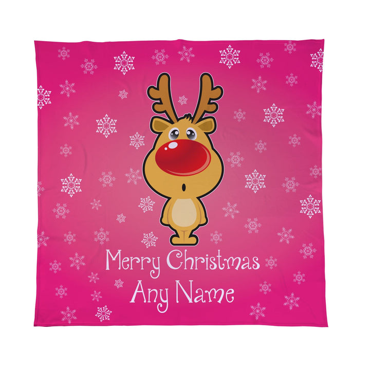 Personalised Cartoon Reindeer Pink - Fleece Blanket Throw