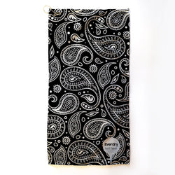 Personalised Lightweight, Microfibre Golf Towel - Paisley Black and White