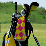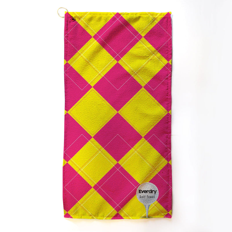 Personalised Lightweight, Microfibre Golf Towel - Pink Yellow Argyll