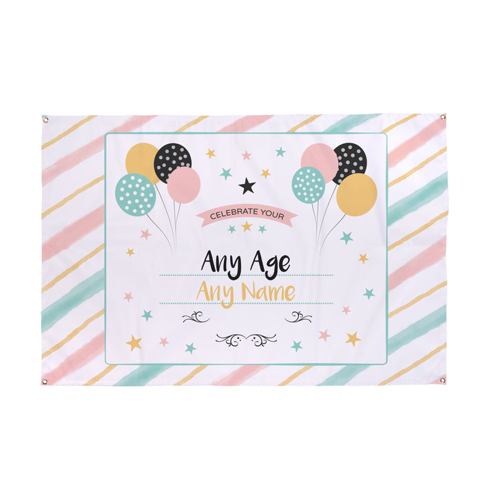 Striped Birthday - Personalised Banner - 5ft x 3ft