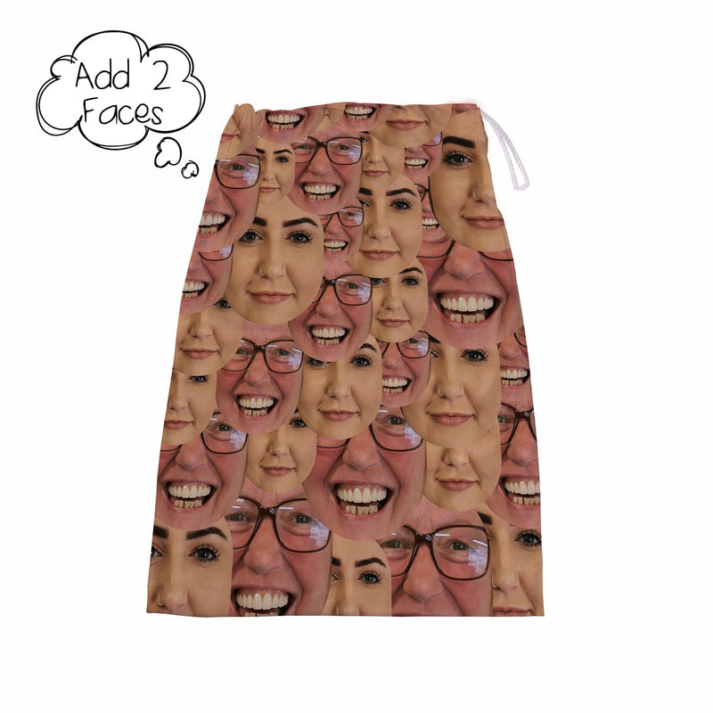 Upload two faces and see them scatter across our reusable Santa sacks!