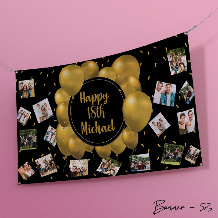 Personalised Any Text - Gold Balloon's Birthday Banner - 5ft x 3ft