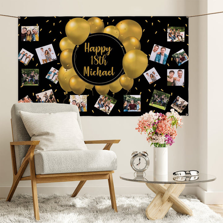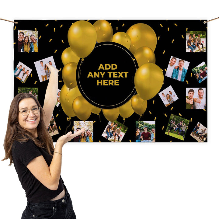 This personalised gold balloon photo banner is a great addition to your upcoming event! Suitable for any occasion, you can edit the text to reflect your celebration or share a personal message and add your most cherished photos.