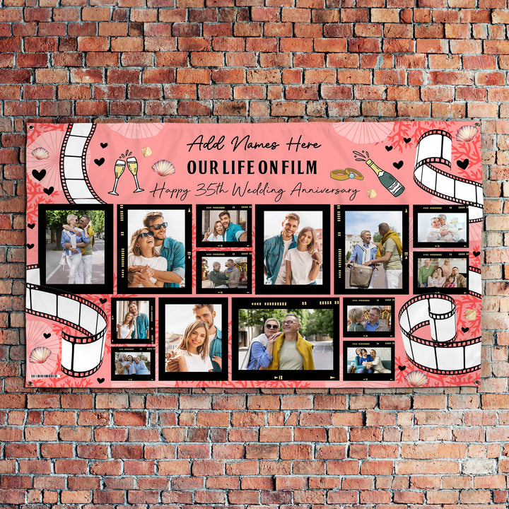 35th Coral Wedding Anniversary - Personalised 5ft x 3ft Banner
