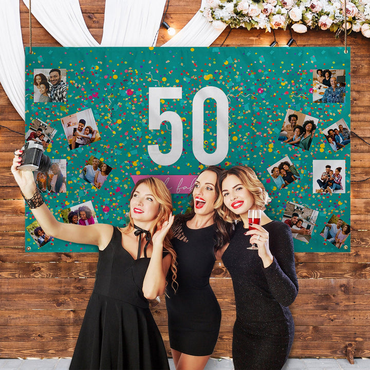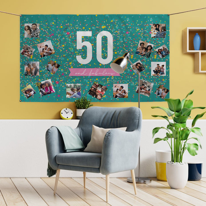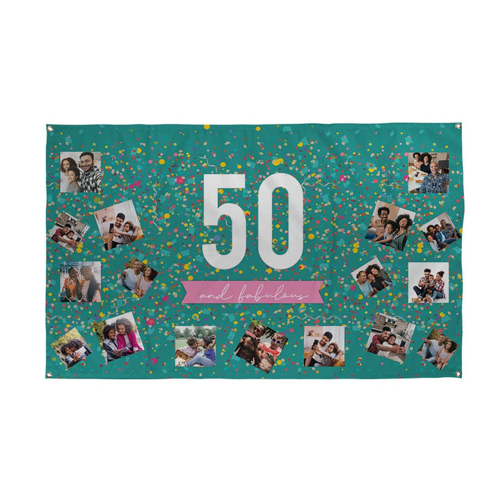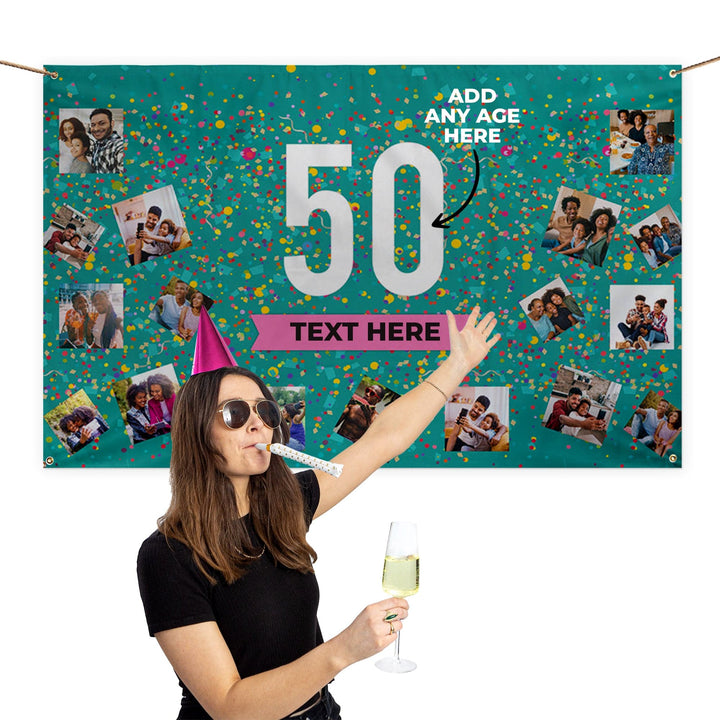 This personalised birthday photo banner is a great addition to your upcoming birthday party, celebration, or any other occasion! Edit the text in the centre to reflect your occasion or share a personal message and add 16 of your most cherished photos.