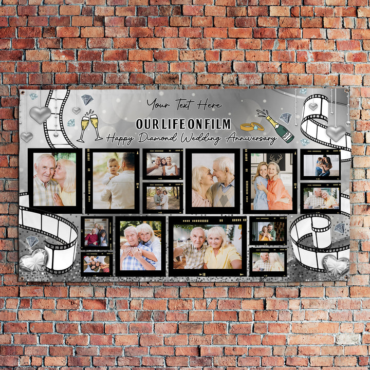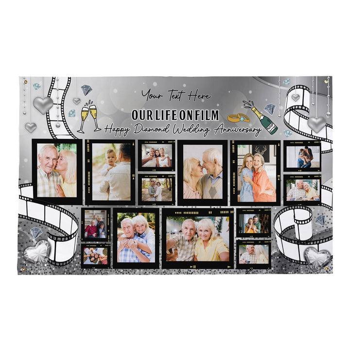 60th Diamond Wedding Anniversary - Personalised 5ft x 3ft Banner