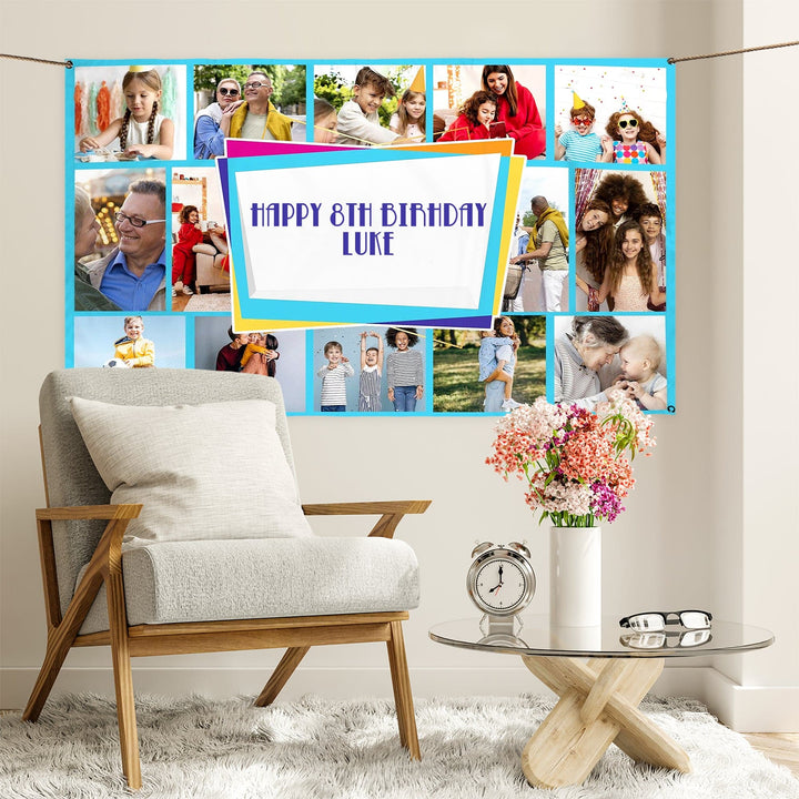 This personalised photo banner is a great addition to your upcoming event! Suitable for any occasion, you can edit the text to reflect your celebration or share a personal message and add your most cherished photos. Choose your background colour too!