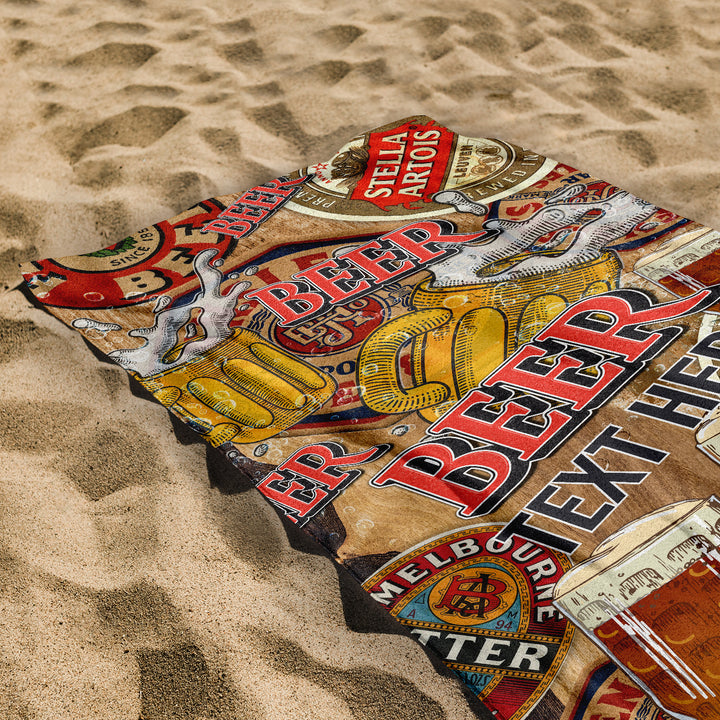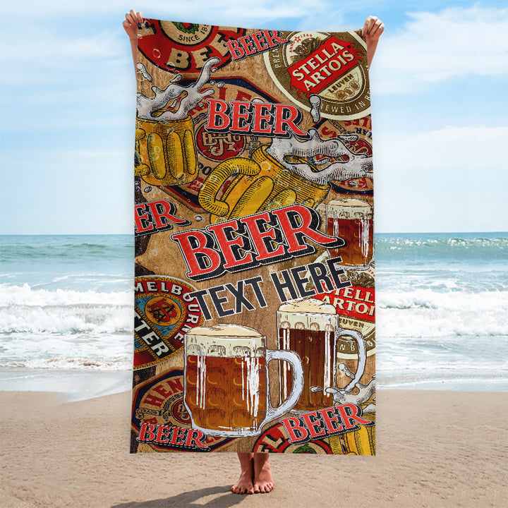 Beer Collage - Personalised Lightweight, Microfibre Beach Towel - 150CM X 75CM