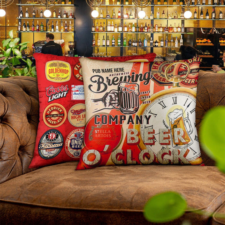 Beer O'clock - 45cm or 61cm Square Personalised Pub Cushion