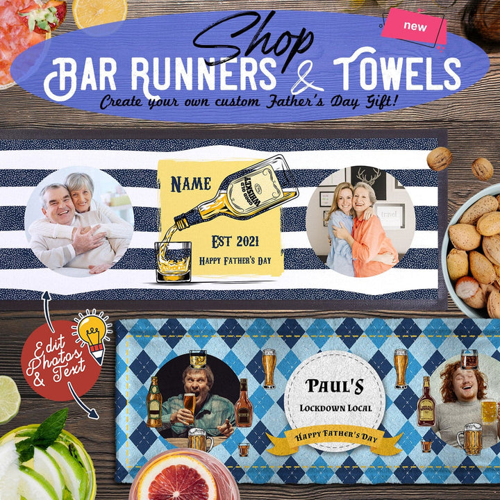 Our personalised bar runners are ideal for multiple purposes and venues. Personalise with your bar or pub name or add that extra personalised touch to a special occasion.
