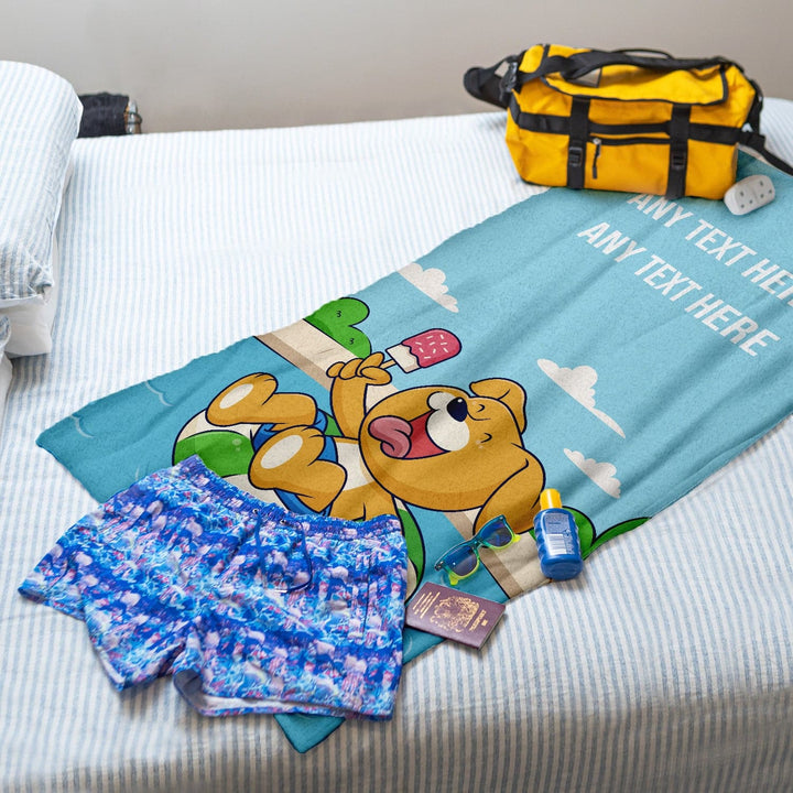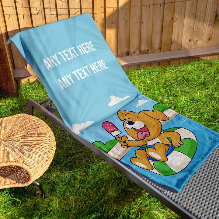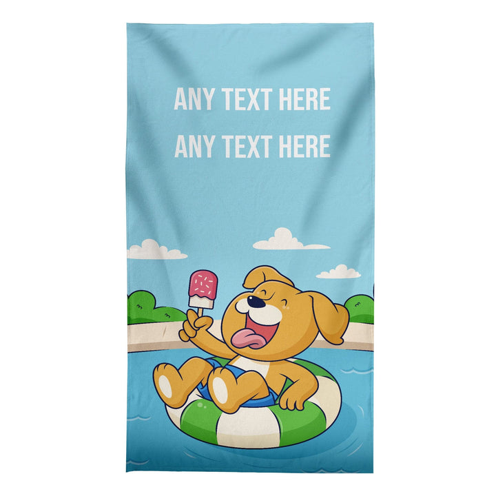 Cartoon Dog - Pool Day Out - Personalised Beach Towel - 150CM X 75CM
