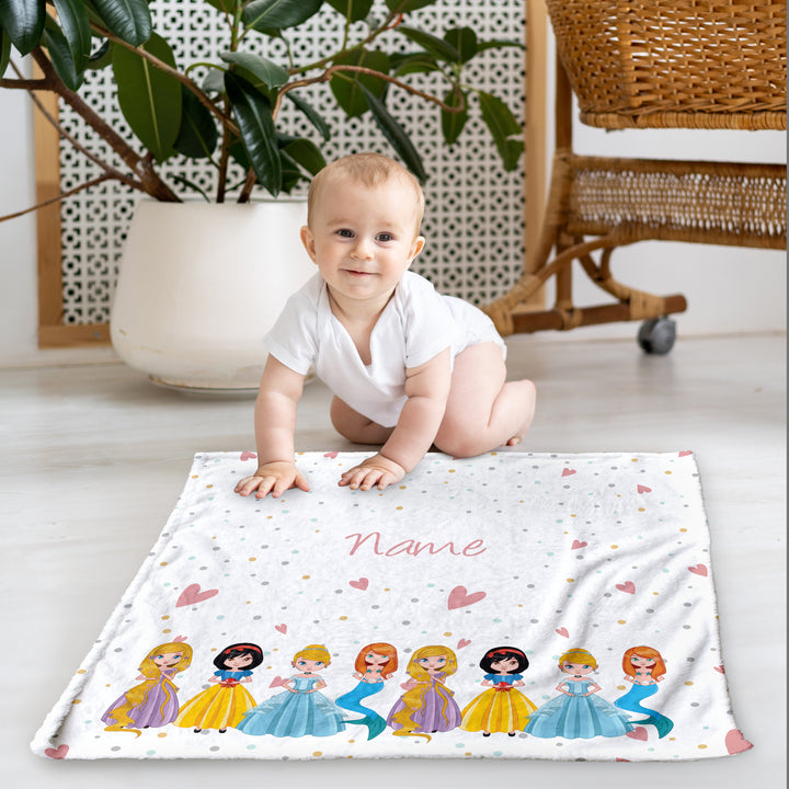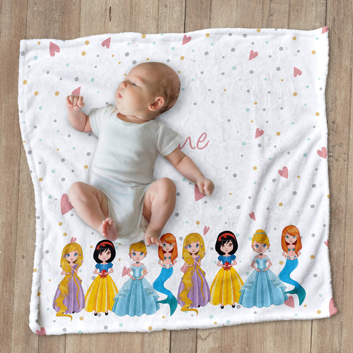 Cartoon Princesses - Personalised Extra Soft Luxury Baby Blanket - 75cm x 75cm