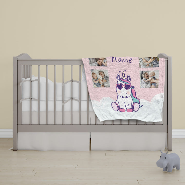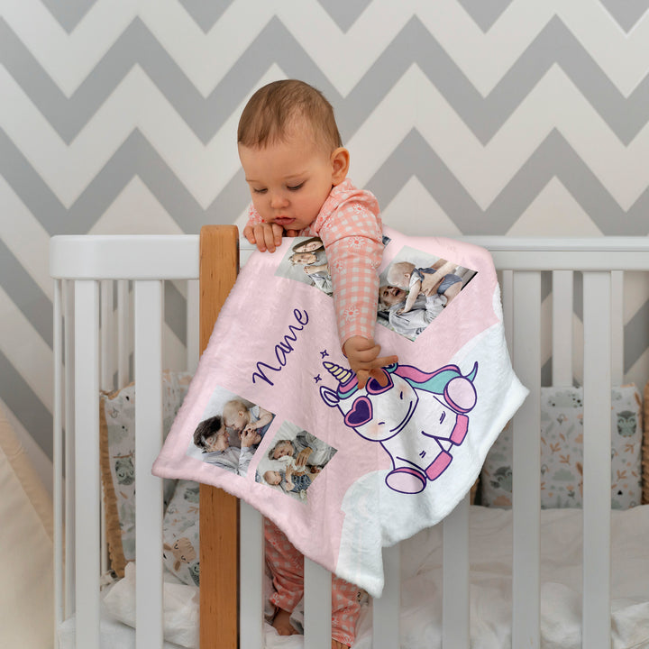 Cartoon Unicorn - Personalised Extra Soft Luxury Baby Blanket - 75cm x 75cm