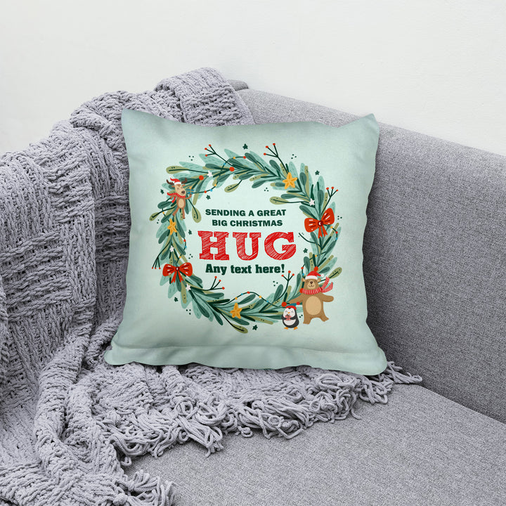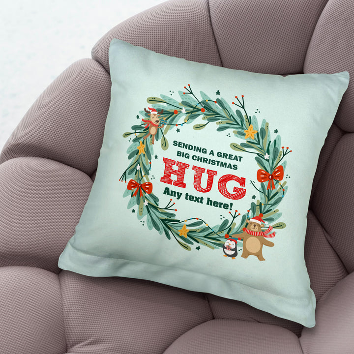 Christmas Hug - 26cm x 26cm - Personalised Cushion