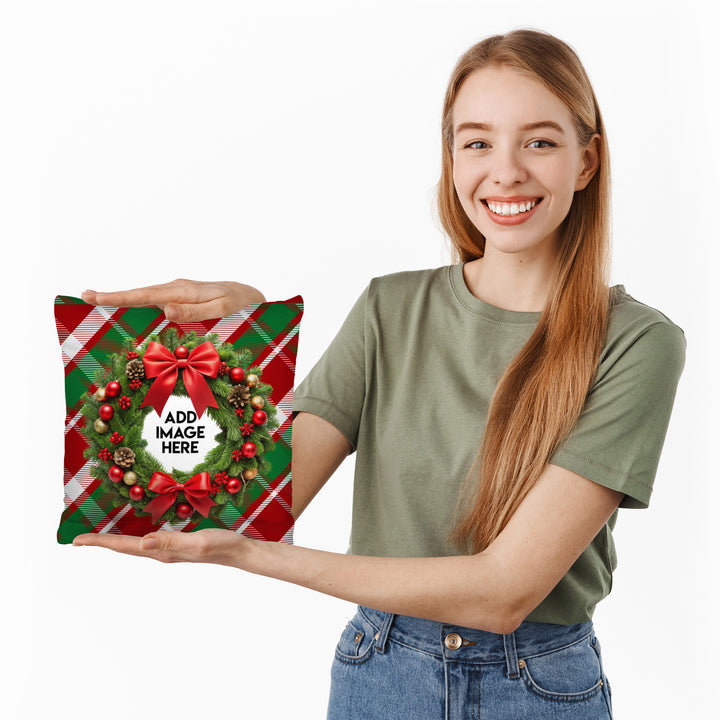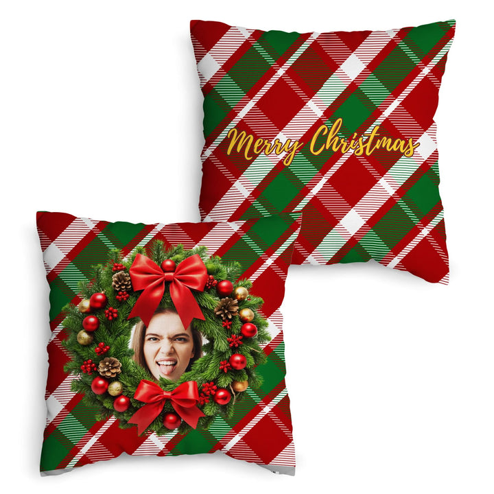 Christmas Wreath - 1 Photo - Personalised Cushion - Two Sizes