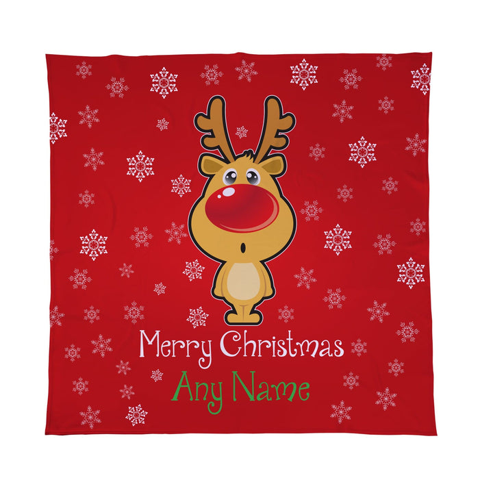 Personalised Cartoon Reindeer Red - Fleece Blanket Throw