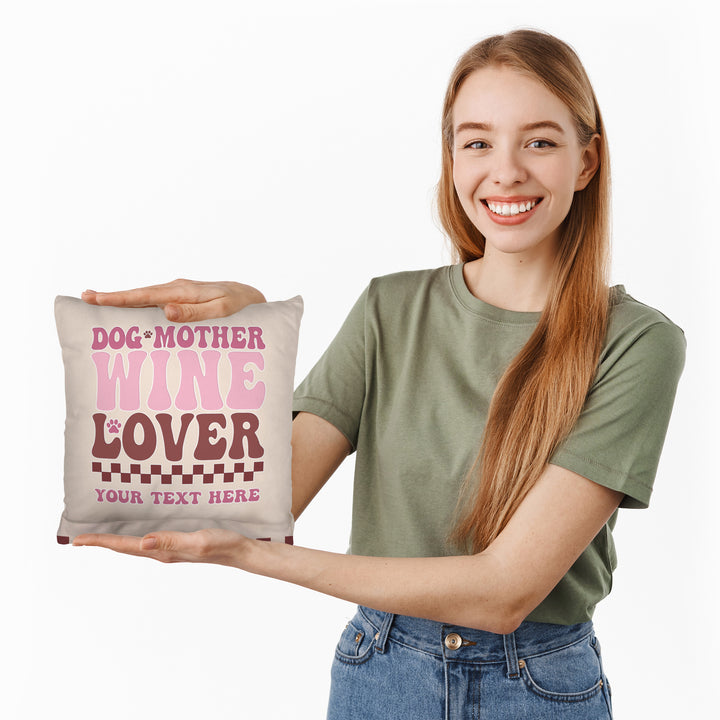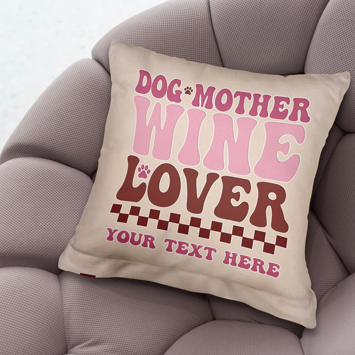 Dog Mother - Wine Love - 26cm x 26cm - Personalised Cushion