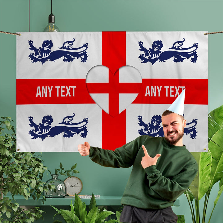 England - St George - 4 Lions & Heart - 5 X 3 Banner