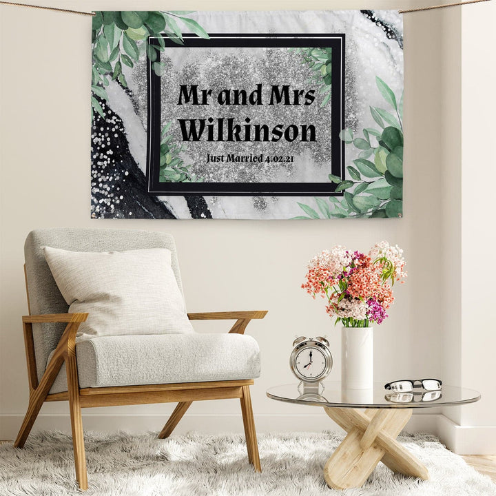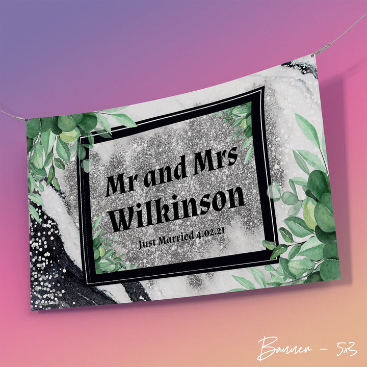 Personalised Text - Printed Glitter Marble Banner - 5ft x 3ft