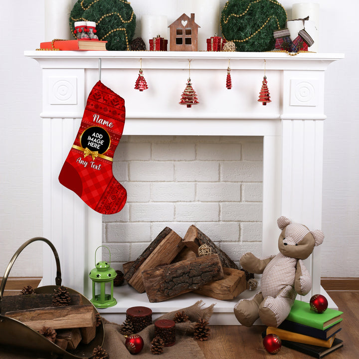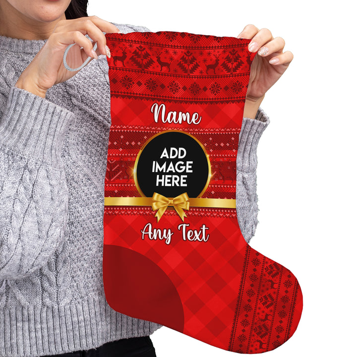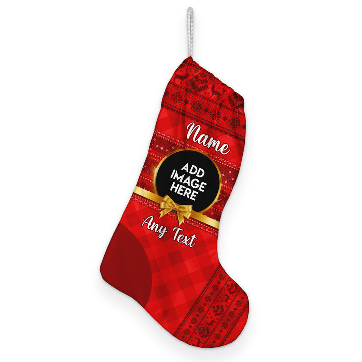 Golden Bow - Red - Personalised Photo Christmas Stocking