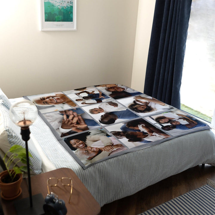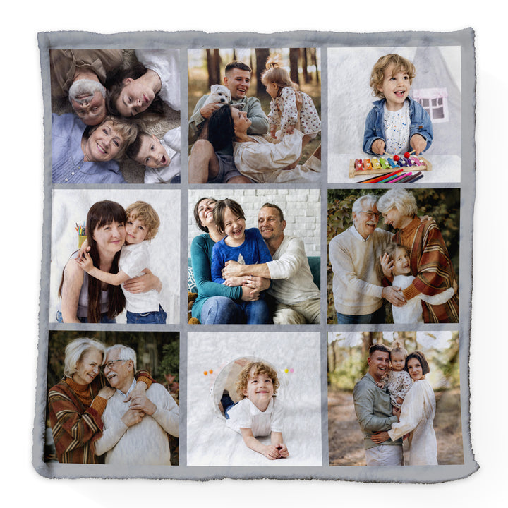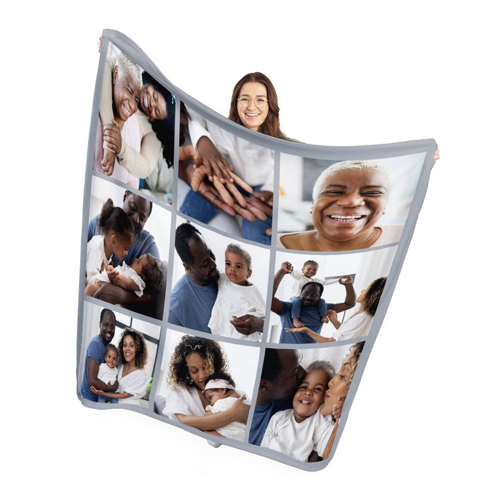 Soft Grey - 9 Photo - Personalised Photo Fleece Blanket - Custom Fleece Blankets