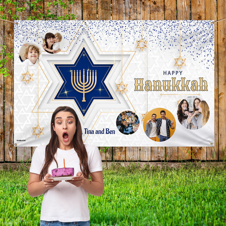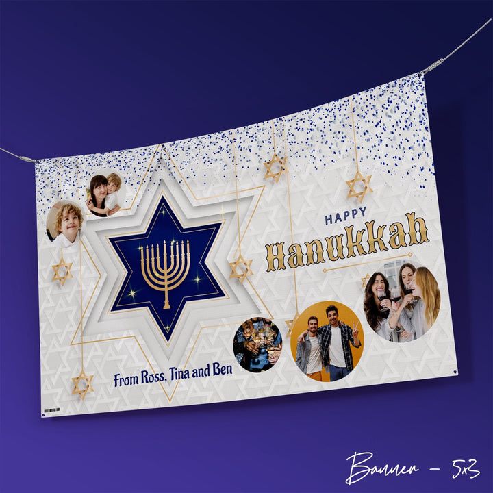 Happy Hanukkah Photo Banner - Edit text - 5FT X 3FT