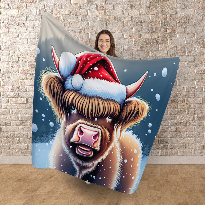 Highland Cow - Christmas Cartoon - Personalised Fleece Blanket - 150cm x 150cm