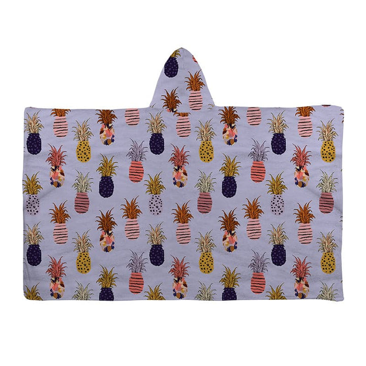 Hooded Towel - Lightweight, Microfibre - Pineapples - Purple